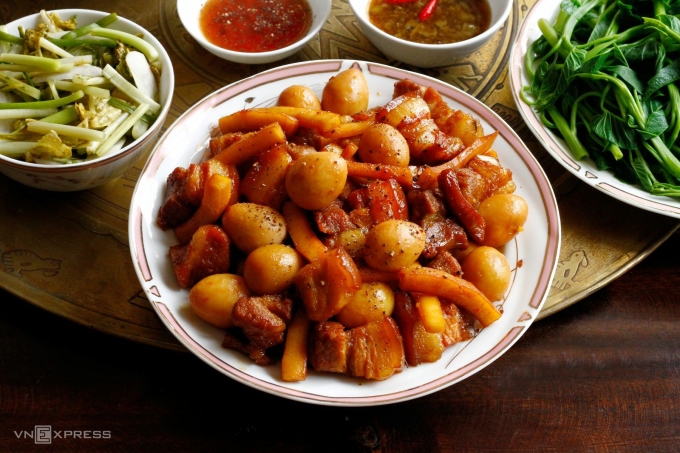 Thịt ba chỉ được lựa chọn kỹ lưỡng, sau đó sơ chế sạch và thái miếng vừa ăn. Để món ăn thêm đậm đà, hãy ướp thịt với một chút mắm, muối, đường và nước hàng ít nhất 30 phút. Sau đó, cho thịt vào nồi đảo cho săn lại rồi thêm nước xâm xấp, đun sôi và hớt bọt. Tiếp theo, cho cùi dừa vào kho ở lửa nhỏ. Sau khoảng 20 phút, thêm trứng cút vào và nêm lại gia vị cho vừa miệng, tiếp tục kho cho đến khi thịt và trứng đều thấm. Khi thịt mềm, nước kho còn khoảng 1/3 trong nồi, tăng nhiệt độ và lắc nồi để tạo màu sắc hấp dẫn.