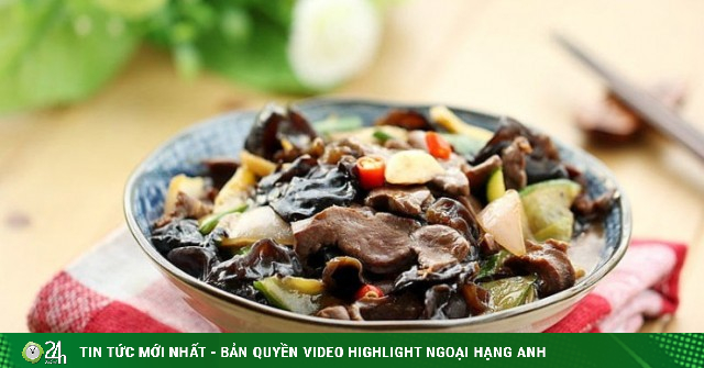 – Đun nóng chảo, cho dầu vào và xào tim heo cho đến khi vừa chuyển màu, sau đó vớt ra. Giữ lại một ít dầu trong chảo, xào hành tây cho thơm, tiếp theo cho dưa leo và mộc nhĩ vào xào đều.